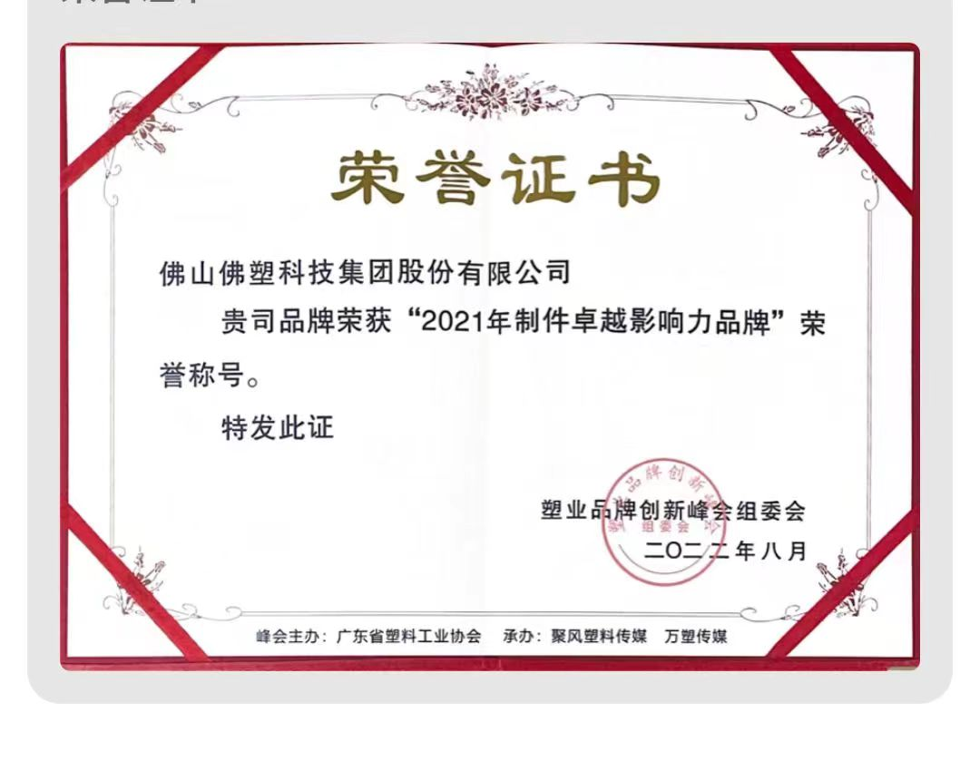 8月1日,2022塑業品牌創新峰會&塑業品牌頒獎盛典在佛山召開,佛塑科技榮獲“2021年制件卓越影響力品牌”稱號