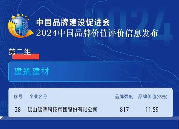 近日,“2024中國品牌價值評價信息”榜單發布,佛塑科技成功上榜。