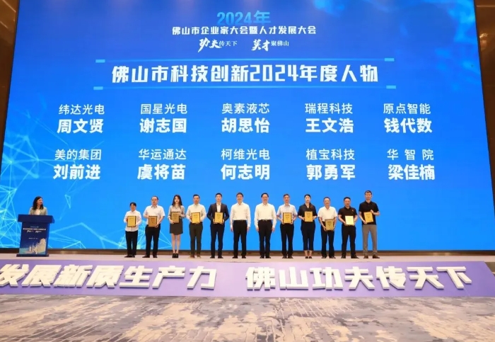 9月27日,2024年佛山企業家大會暨人才發展大會在佛山舉行,首次評出佛山市企業發展、科技創新等年度十大人物。佛塑科技控股子公司緯達光電周文賢榮獲“佛山市科技創新2024年度人物”稱號。