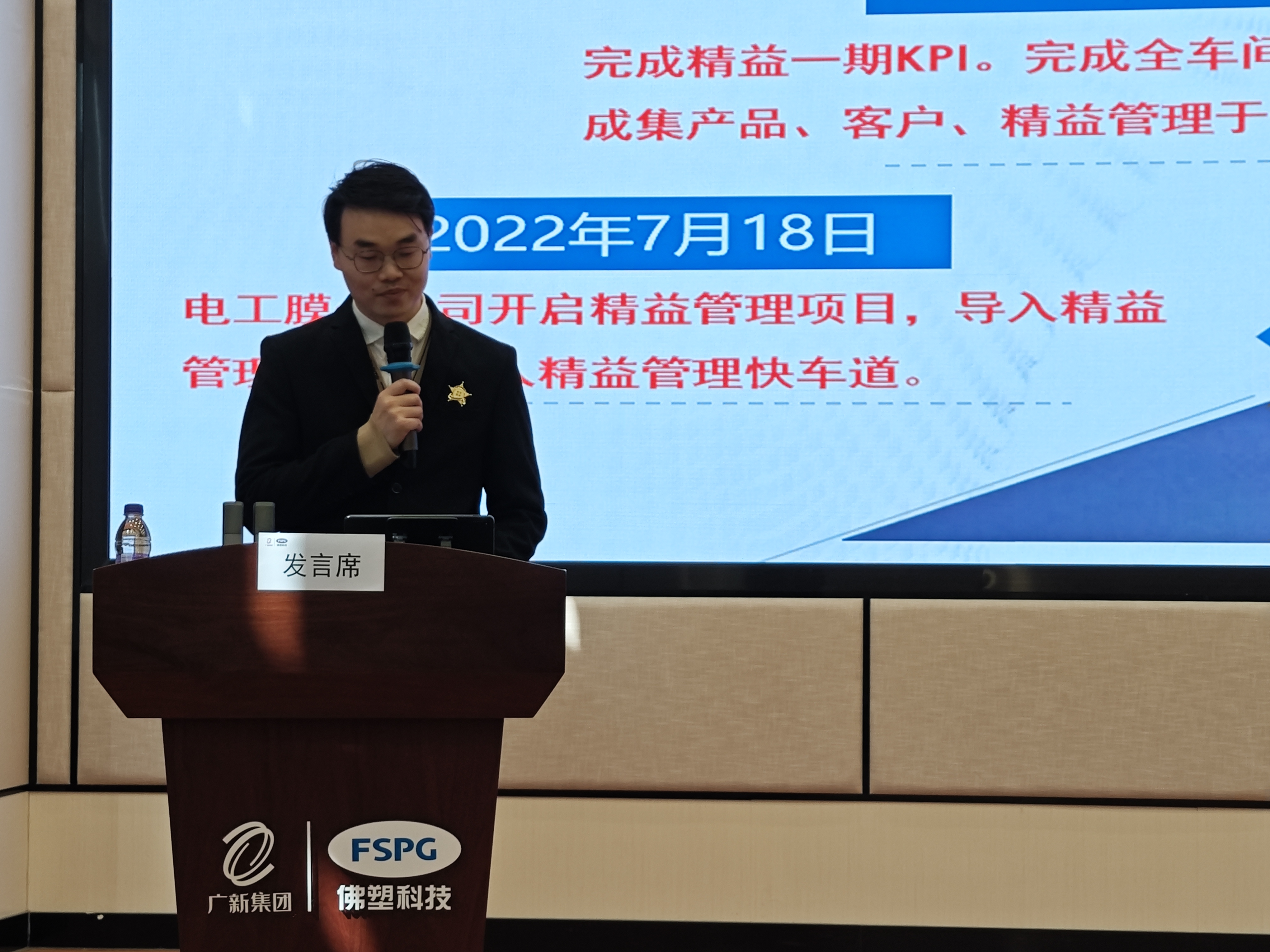 公司精益辦鄒長城作“三精驅動 精益創效”2024年總結及2025年計劃報告,詳細回顧過去一年佛塑科技在精健組織、精智制造、精益運營方面取得的顯著成效,明確2025年精益管理工作重點和全力打造FBS的目標。會上,遠大方略顧問陳棟老師結合當前行業的發展趨勢和競爭態勢,為進一步提升公司精益管理水平提供了專業指導。