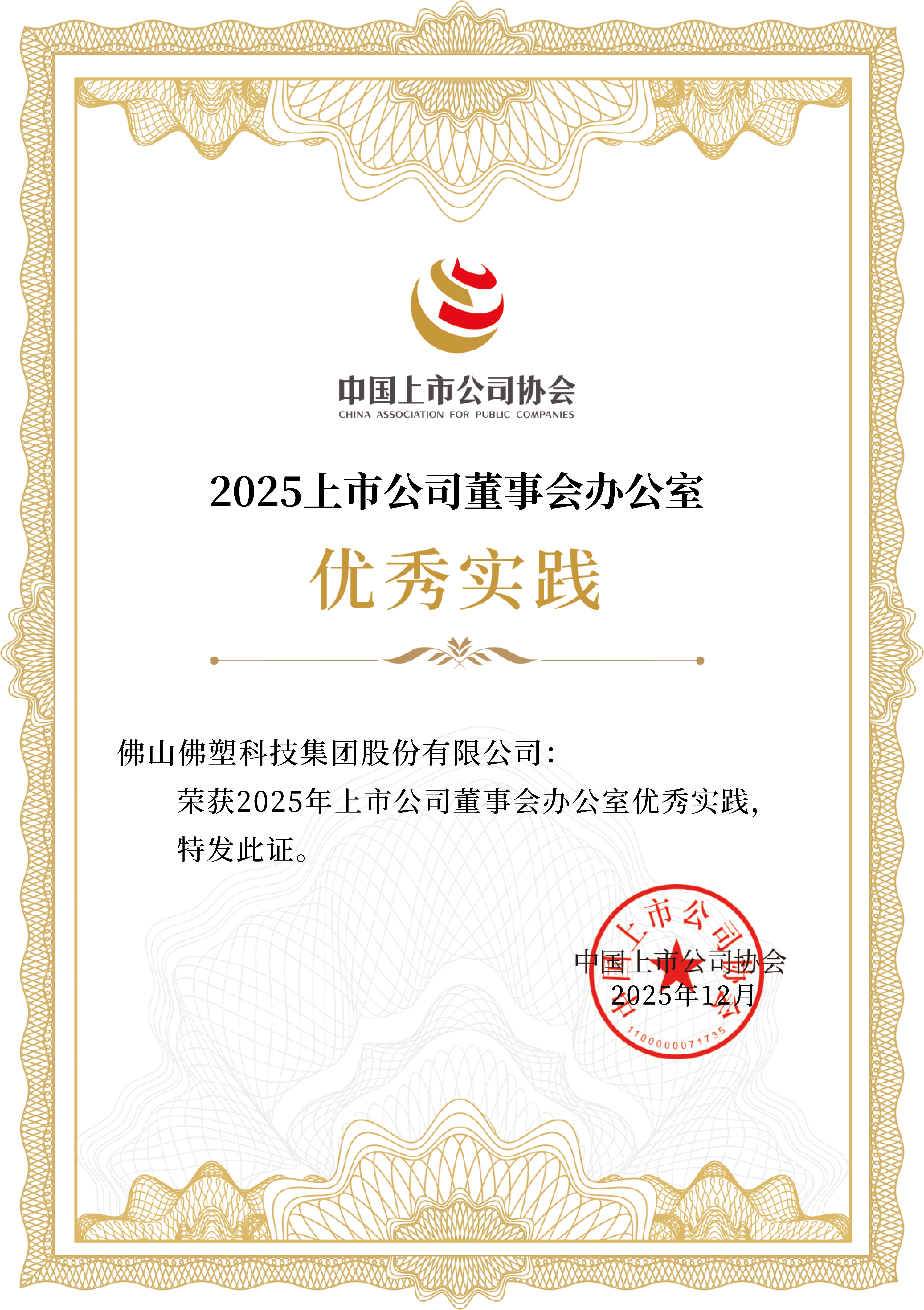 近日,中國上市公司協會發布了“2025上市公司董事會辦公室最佳實踐案例”征集活動結果,佛塑科技獲評“2025年度上市公司董事會辦公室優秀實踐案例”,是繼2024年獲此榮譽后再次入選。