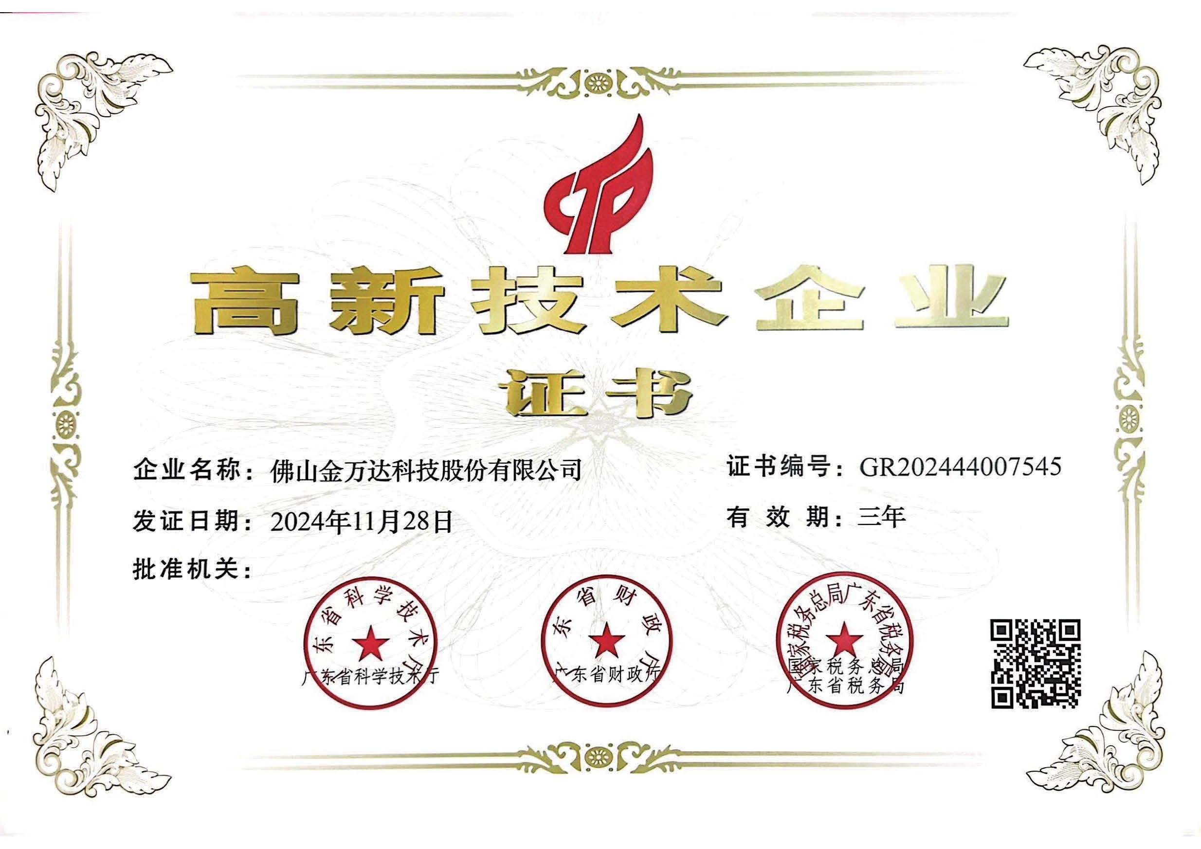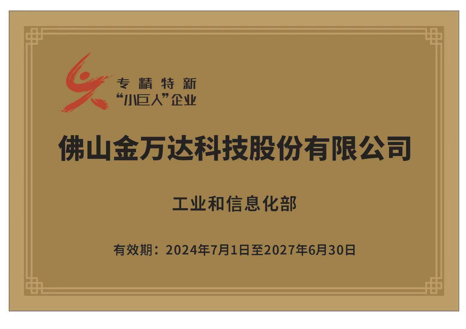 近日,佛塑科技控股子公司佛山金萬達科技股份有限公司(以下簡稱金萬達公司)通過國家專精特新“小巨人”企業復審,并獲得2024年國家高新技術企業、廣東省知識產權示范企業認定。這不僅是對金萬達公司科技創新實力和行業地位的充分肯定,更是佛塑科技深耕新材料領域,積極踐行國家創新驅動發展戰略的成果體現。