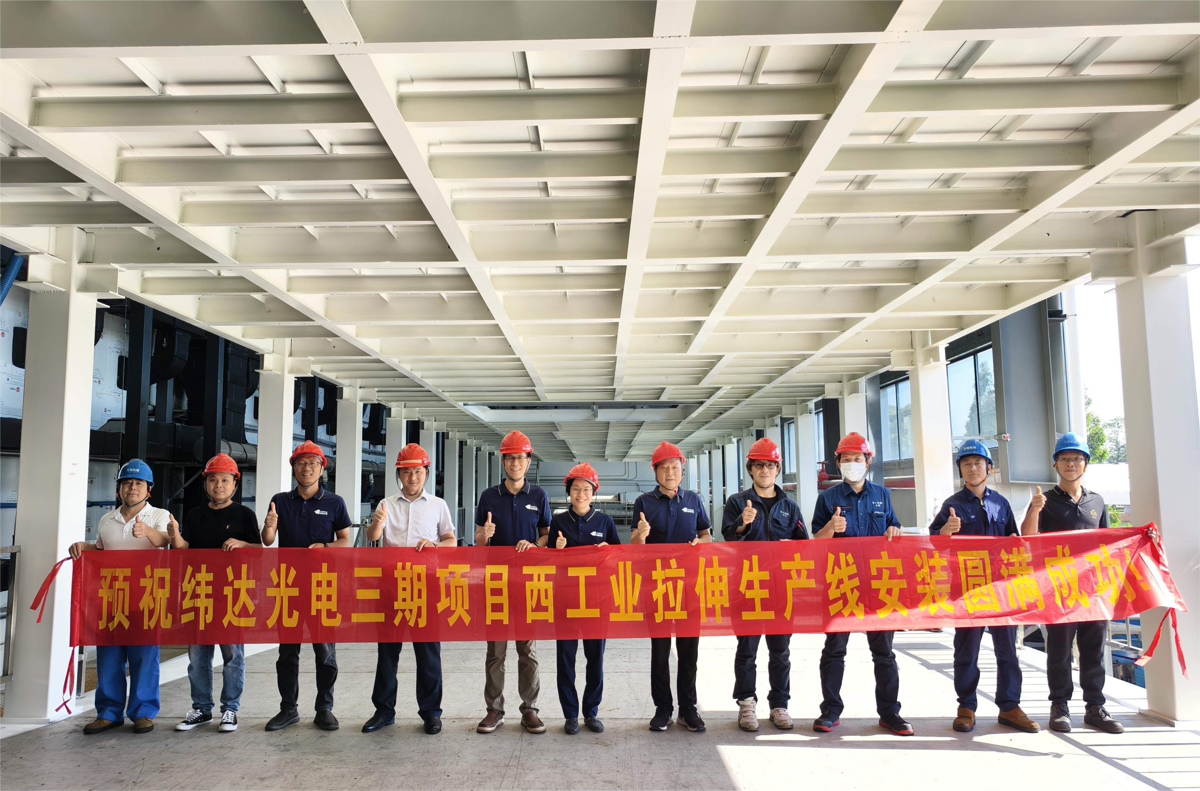 5月15日,隨著一聲令下,起吊機(jī)緩緩升起,佛塑科技控股子公司緯達(dá)光電偏光膜三期建設(shè)項(xiàng)目(下稱“三期項(xiàng)目”)最重要、也是最后一條主設(shè)備產(chǎn)線——長55.5米、高10.5米的日本西工業(yè)拉伸生產(chǎn)線進(jìn)入設(shè)備安裝階段,標(biāo)志著緯達(dá)光電三期項(xiàng)目建設(shè)正加速推進(jìn)。